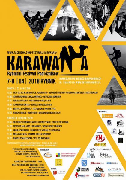 Organizatorami Karawany s: Dom Kultury w Rybniku-Chwaowicach www.dkchwalowice.pl, Szkoy Spoeczne im. Jerzego Kukuczki www.ssp.rybnik.pl, Klubokawiarnia ty Mynek www.facebook.com/zolty.mlynek.klubokawiarnia/.