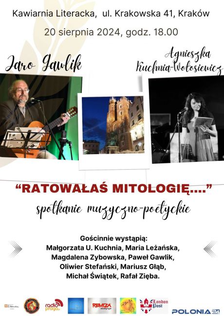 Wieczór autorski znanego w Krakowie poety i barda, Jaro Gawlika oraz jego młodszej koleżanki po piórze, Agnieszki Kuchni-Wołosiewicz - pochodzącej z Krakowa, lecz tworzącej od lat poezje w Wielkiej Brytanii, gdzie mieszka.