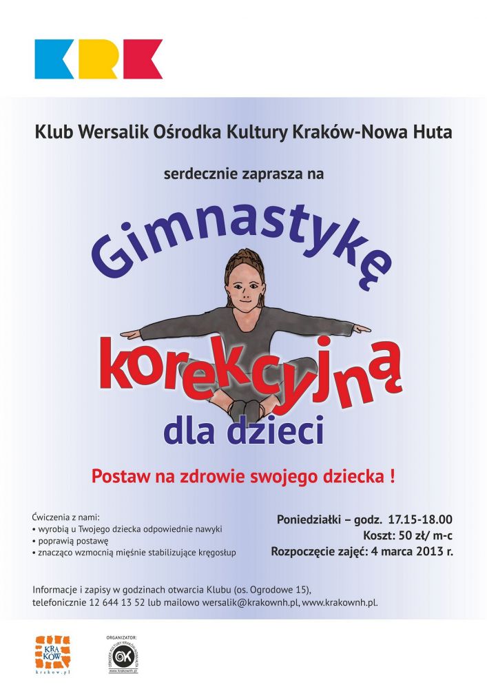 Wszystkich rodziców, którzy szukajš dla swoich pociech zajeć korekcyjnych, zapraszamy do Klubu Wersalik Oœrodka Kultury Kraków-Nowa Huta (os. Ogrodowe 15).