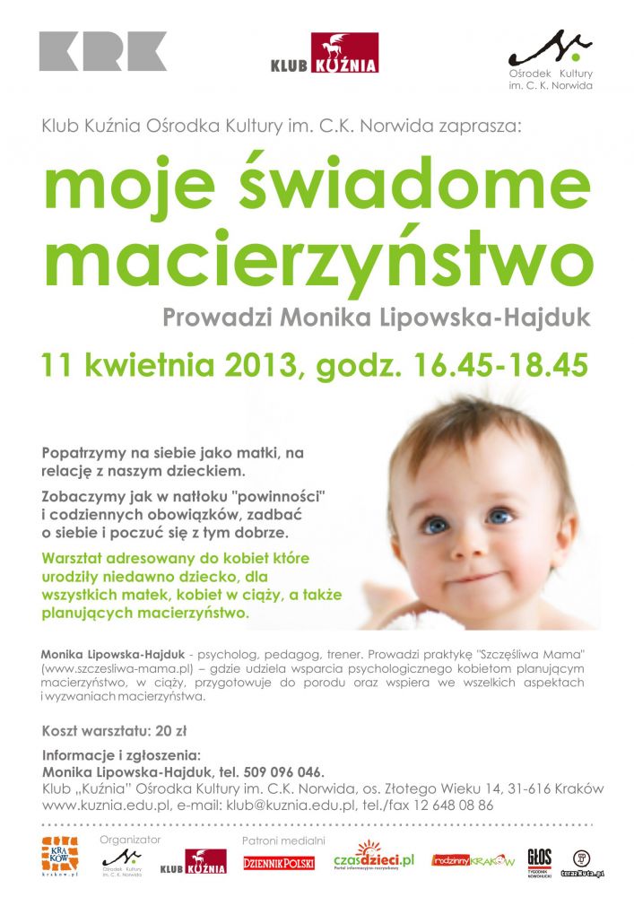 Będziemy mogły podzielić się swoimi obawami, trudnociami, a także uzmysłowić sobie piękne, ważne chwile i ogrom radoci płynšcy ze wiadomego bycia z dzieckiem.