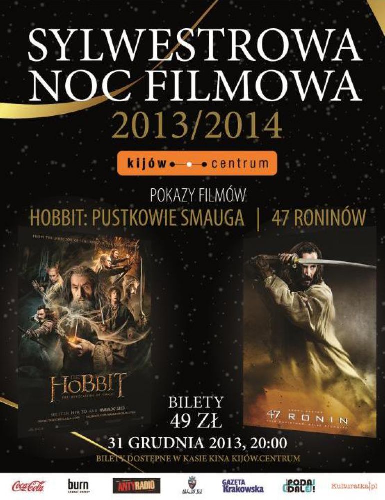 W sylwestrowš noc proponujemy Państwu iœcie filmowš ucztę – dwie rewelacyjnie zapowiadajšce się produkcje rodem z Hollywood. Na poczštek - druga częœć filmowej adaptacji ksišżki J.R.R. Tolkiena – Hobbit: Pustkowie Smauga oraz przedpremierowy pokaz filmu 47 Roninów.