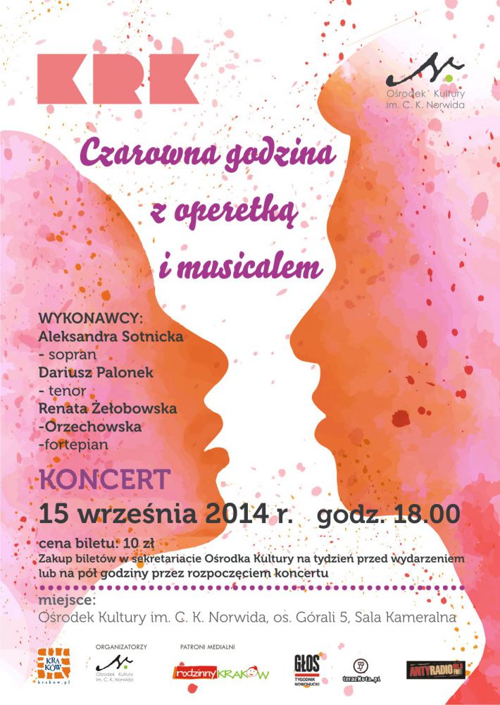 Koncert odbędzie się 15 wrzeœnia 2014 r, o godz. 18.00, w Sali Kameralnej Oœrodka Kultury im. C. K. Norwida, os. Górali 5.
