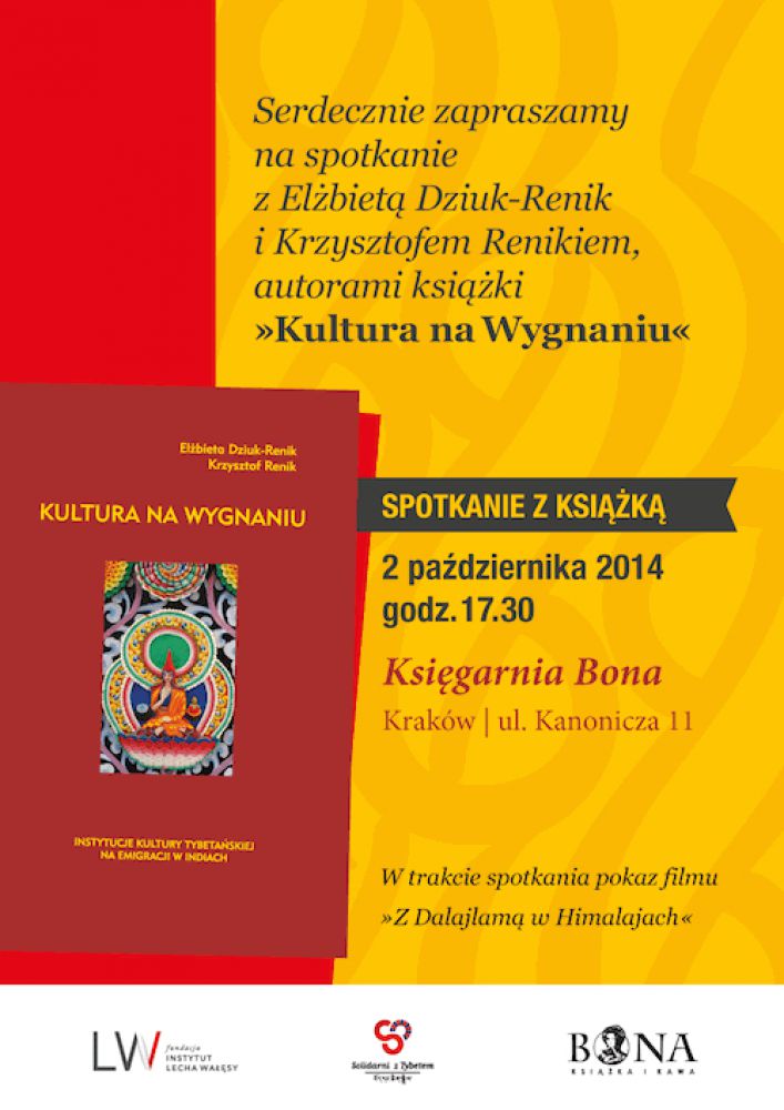 Dzięki uprzejmoci Krzysztofa Renika i Elżbiety Dziuk-Renik, autorów ksišżki Kultura na wygnaniu, Instytut Lecha Wałęsy został wydawcš powyższej publikacji w ramach programu Solidarni z Tybetem. Jest to pierwsza w Polsce i jedna z nie wielu na wiecie ksišżka powięcona ogromnej pracy Tybetańskiej diaspory w Indiach, której celem jest odbudowa instytucji kultury Tybetańskiej na uchodstwie.