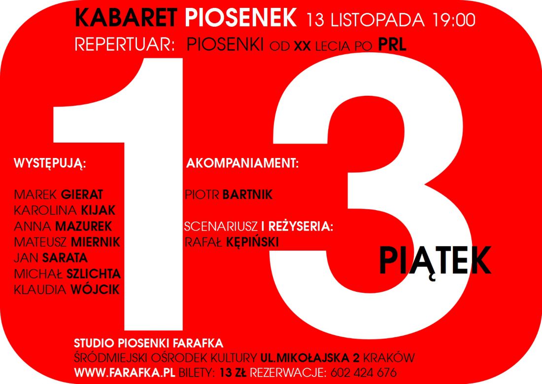 13 listopada PITEK godzina 19.00 ul. Mikoajska 2 Krakw