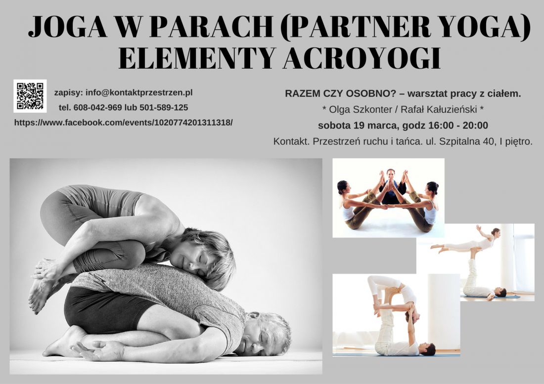 Sprawdzimy jakie korzyci daje taka forma praktyki, zadbamy o wzmocnienie i rozcišgnięcie ciała w ćwiczeniach z partnerem/partnerkš, spróbujemy niezwykłych i ekscytujšcych pozycji acroyogi i będziemy dobrze się bawić w kontakcie z innymi :-)