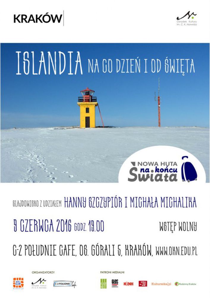 W ramach cyklu Nowa Huta na końcu wiata zapraszamy na slajdowisko z udziałem Hanny Szczypiór i Michała Michalika pt. Islandia na co dzień i od więta.