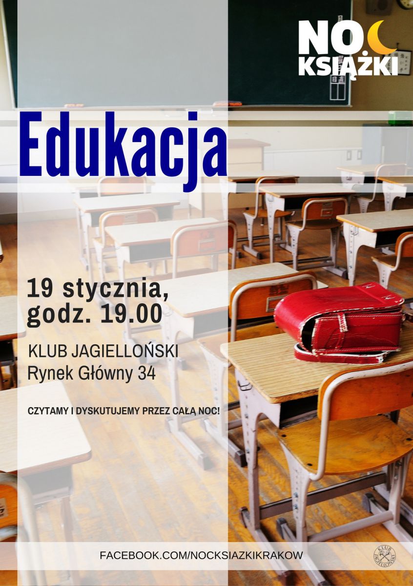 Pierwsze w nowym roku spotkanie z serii Nocy Ksišżki poœwięcone będzie edukacji. Odbędzie się w czwartek 19 stycznia o godz. 19.00 w siedzibie Klubu Jagiellońskiego przy krakowskim Rynku Głównym 34.