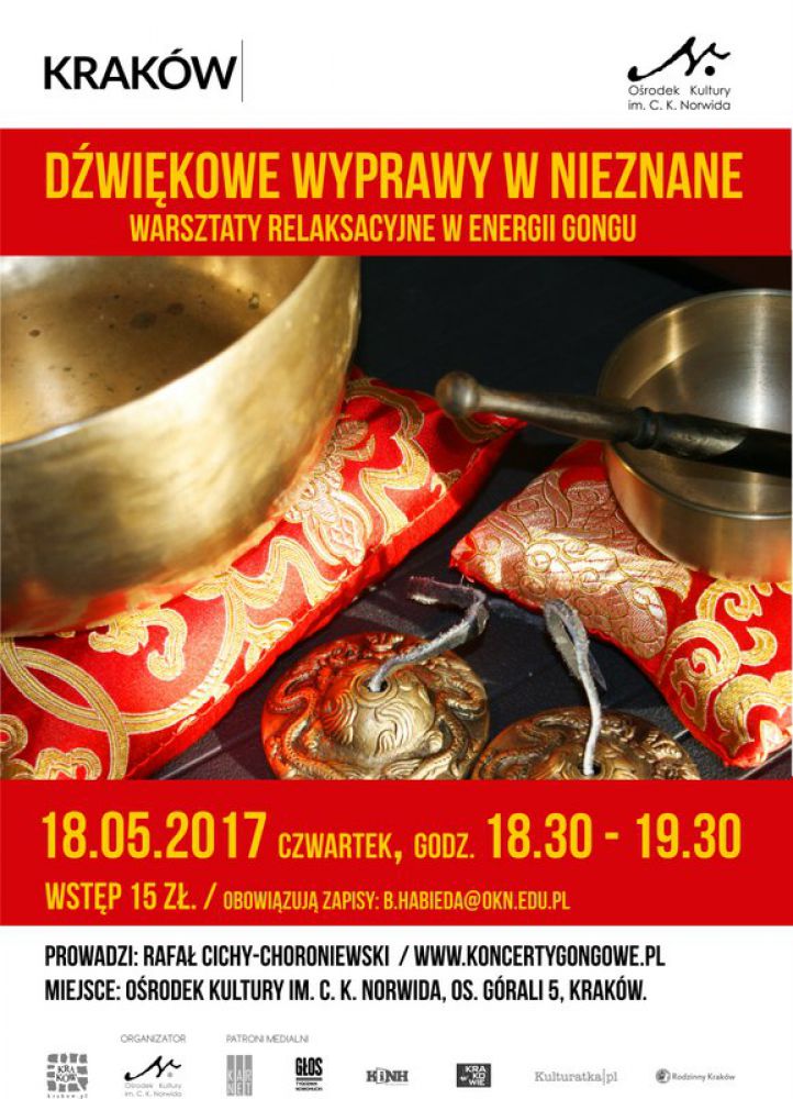 Uczestników prosimy o przyniesienie własnych mat i koców, na których będzie można się położyć i w pełni skorzystać z działania dwięku.