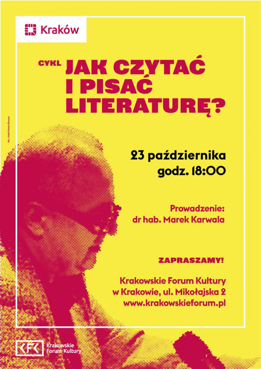 Krakowskie Forum Kultury zaprasza na cykl spotkań zatytułowanych Jak czytać i pisać literaturę, które prowadzi dr hab. Marek Karwala - profesor Uniwersytetu Pedagogicznego w Krakowie.