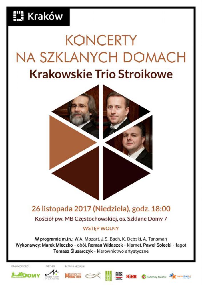 Orodek Kultury im C. K. Norwida oraz Parafia pw. Matki Bożej Częstochowskiej zapraszajš na listopadowy koncert z cyklu Koncerty na Szklanych Domach na którym wystšpi Krakowskie Trio Smyczkowe.