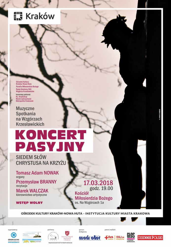 Siedem Słów Chrystusa na Krzyżu to tytuł Koncertu Pasyjnego z cyklu Muzyczne Spotkania na Wzgórzach Krzesławickich, który odbędzie się w sobotę 17 marca br. o godz. 19.00 w Kociele pw. Miłosierdzia Bożego (os. Na Wzgórzach 1a). Na koncert zapraszajš organizatorzy cyklu: Orodek Kultury Kraków-Nowa Huta, Dzielnica XVII Wzgórza Krzesławickie oraz Parafia Miłosierdzia Bożego na Wzgórzach Krzesławickich.