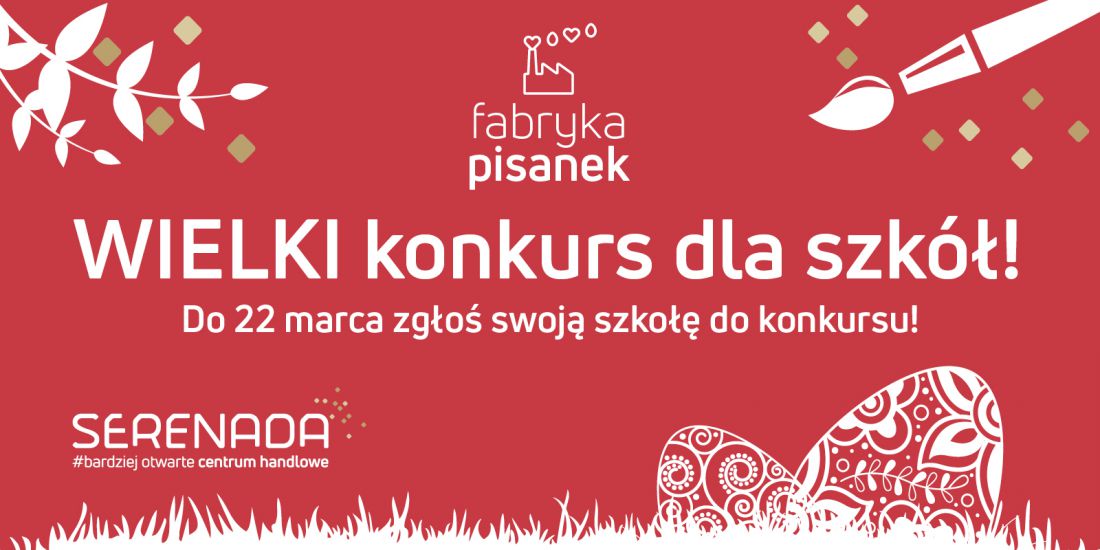 Już na poczštku kwietnia Centrum Serenada zamieni się w wielkš pracownię plastycznš! Wszystko za sprawš specjalnej, wielkanocnej akcji Fabryka Pisanek, w której małopolskie szkoły podstawowe będš rywalizowały o cenne nagrody, m.in. nowoczesnš pracownię komputerowš dla swojej szkoły. Termin nadsyłania prac mija 22 marca, dlatego warto się pospieszyć i wzišć udział w konkursie!