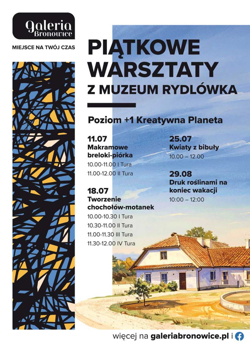 Wakacje to idealny czas na rozwijanie pasji i odkrywanie talentów. W lipcu i sierpniu Galeria Bronowice wspólnie z Rydlówką, oddziałem Muzeum Krakowa, zrealizuje cykl czterech kreatywno-edukacyjnych zajęć dla rodzin. Nie zabraknie manualnych wyzwań i opowieści, które podkreślą „bronowicki” charakter wydarzeń. Za udział centrum handlowe będzie przyznawać nagrody. Pierwsze bezpłatne warsztaty już w piątek, 11 lipca.