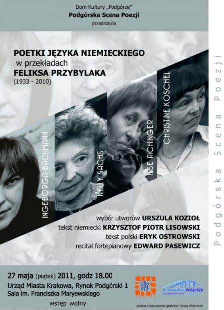 W maju Podgórska Scena Poezji zaprasza na spotkanie z twórczociš poetek niemieckojęzycznych w przekładach Feliksa Przybylaka: Nelly Sachs, Christine Koschel, Ilse Aichinger i Ingeborgi Bachmann.