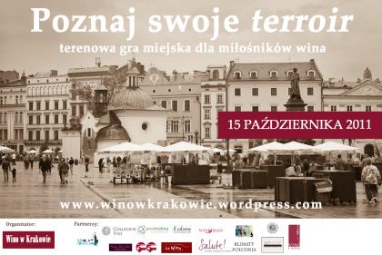 Zapraszamy do udziału w grze miejskiej, której celem jest przybliżenie miłoœnikom wina przestrzeni winiarskiej Krakowa. Pokażemy Wam przyjazne miejsca (winiarnie i sklepy specjalistyczne), gdzie zamawiajšcy kieliszek wina czy kupujšcy butelkę jest mile widzianym klientem a obsługa kompetentnie doradzi. Wskażemy kilka win, które warto spróbować, nie nadwyrężajšc zbytnio smaku i zawartoœci portfela. Wszystko to w jedno popołudnie, w sobotę 15 paŸdziernika 2011 w rejonie Starego Miasta w Krakowie.