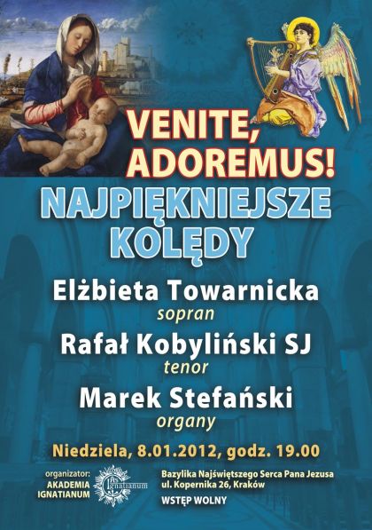 serdecznie zapraszajš na koncert kolęd Venite, adoremus! Najpiękniejsze Kolędy, który odbędzie się w niedzielę, 8 stycznia 2012 r. o godz. 19.00 w Bazylice NSPJ, przy ul. Kopernika 26.