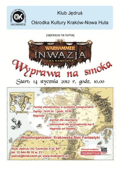 Zapraszamy wszystkich dorosych zainteresowanych tematyk gier z gatunku SF na oglnopolski indywidualny turniej gry karcianej w systemie szwajcarskim do Klubu Jdru Orodka Kultury Krakw-Nowa Huta. Na najlepszych graczy czekaj nagrody od Galakty (puchar, planszwki).