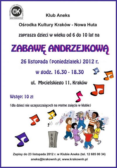 Zbliżajš się Andrzejki! A jeœli Andrzejki to zabawa, wróżby i swawole, na które zaprasza Klub Aneks Oœrodka Kultury Kraków-Nowa Huta (ul. Mycielskiego 11). Zabawa odbędzie się 26 listopada 2012 r. w godz. 16.30-18.30.