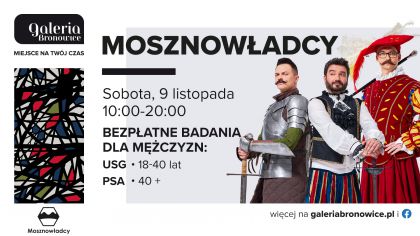 Badania w ramach kampanii Mosznowładcy będą prowadzone w sobotę, 9 listopada, w godz. 10:00-20:00, w Galerii Bronowice na poziomie 0. Są całkowicie bezpłatne oraz nie wymagają wcześniejszych przygotowań czy zapisów.