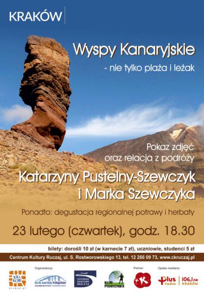 Wyspy Kanaryjskie większości osób kojarzą się z leżeniem plackiem na plaży w opcji all inclusive, wśród tłumu innych turystów. Dla nas to przede wszystkim jednak niesamowite, miejscami wręcz księżycowe krajobrazy i fantastyczne szlaki trekingowe. To cudowna kraina wulkanów i lawy zastygłej w zderzeniu z oceanem, to kręte drogi nad przepaścią, pustynne krajobrazy i dzikie, puste plaże. Na spotkaniu pokażemy Wam co nas najbardziej urzekło na Teneryfie, Gran Canarii, Fuertawenturze i Lanzarote.