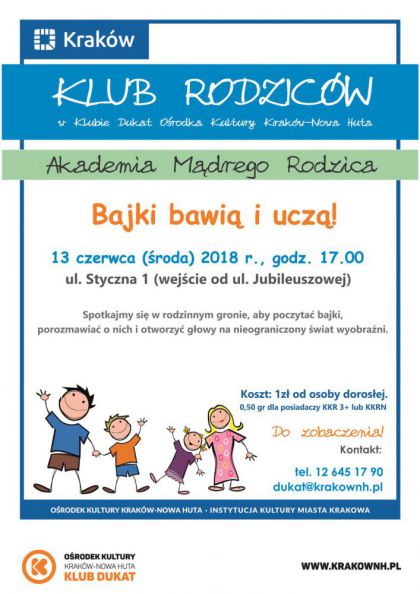Wstęp: 1 zł od osoby dorosłej/zajęcia. Osoby posiadające Krakowską Kartę Rodzinną 3+ płacą 0,50 zł. Zajęcia dofinansowane ze środków Gminy Miejskiej Kraków