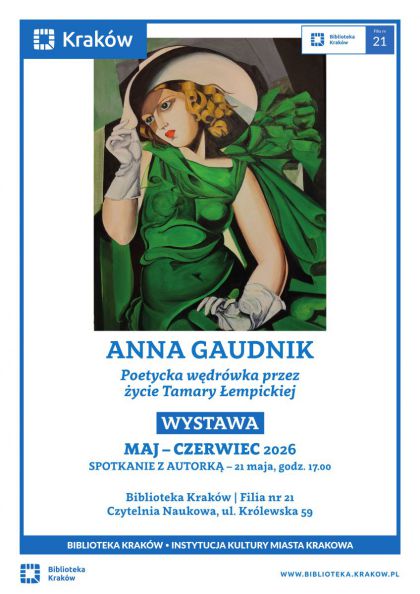 Spotkanie z Anną Gaudnik. Ze swojej poezji znana jest od 20 lat. Z początkiem XXI wieku podjęła inicjatywę publicznego zaprezentowania swojej twórczości. Od tego momentu, w okolicznych instytucjach kultury nieustannie organizuje wieczorki poetyckie, bierze udział w lekcjach poświęconych poezji, zasiada w szkolnych konkursach recytatorskich i teatralnych.