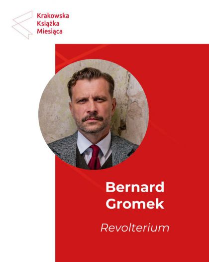 Spotkanie z Bernardem Gromkiem – laureatem nagrody Krakowska Książka Miesiąca. Wręczenie nagrody za książkę Revolterium. Jest to opowieść osadzona w XIX-wiecznym Krakowie, dwa lata po krwawym powstaniu krakowskim. Miasto znów zaczyna płonąć gniewem, a w mrocznych zaułkach polityczny ferment miesza się z plotką o zaginionym skarbie. Rozmowę z laureatem poprowadzi Agnieszka Staniszewska-Mól.